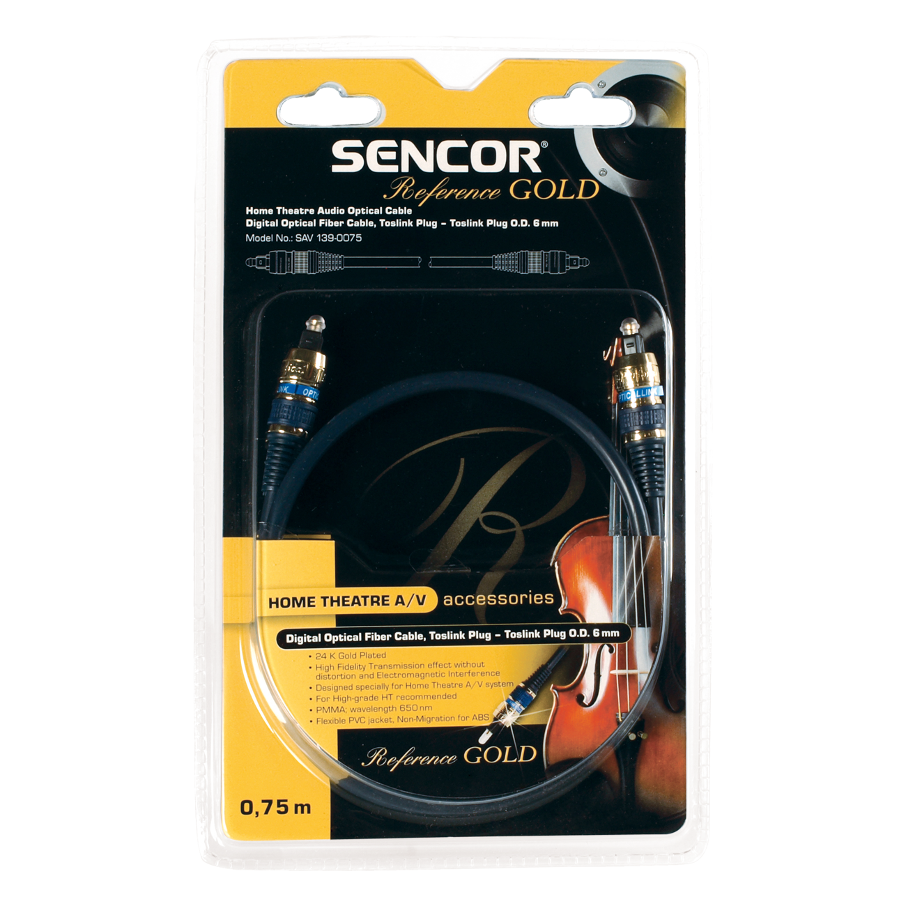 Conectori auriți 24 K Toslink T-T, cablu albastru, O.D. 6mm, lungime 0,75m