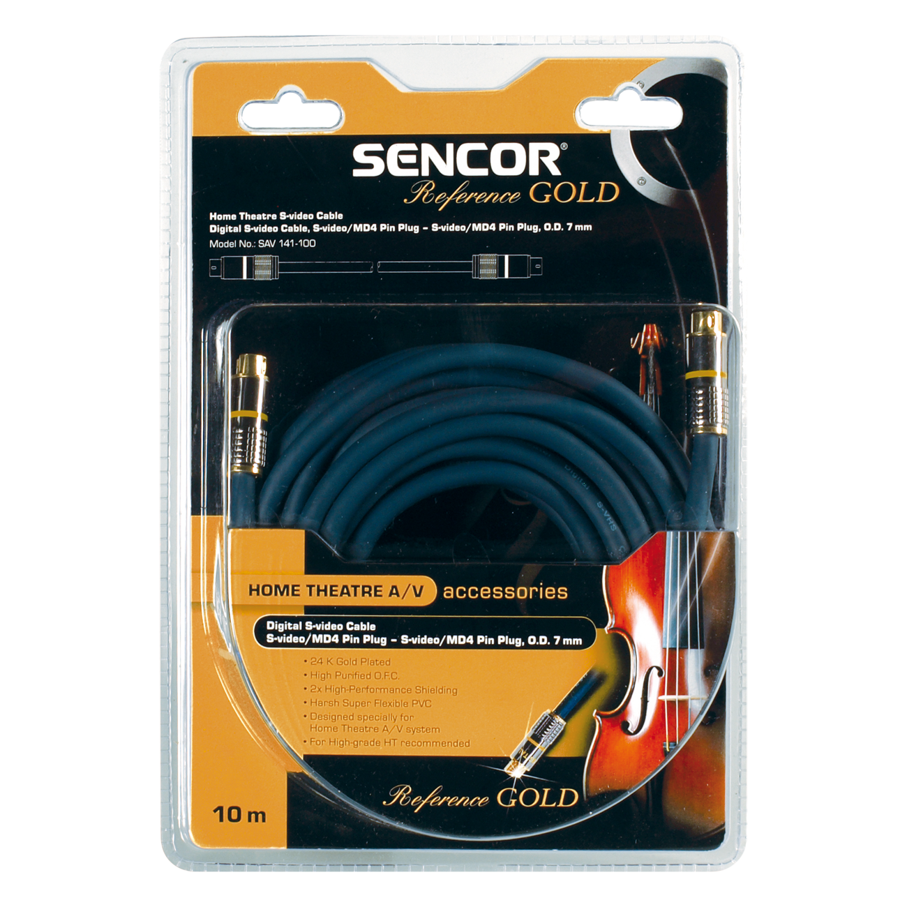 Cablu S-video T-T , Conectori auriți 24K, cablu albastru, O.D. 8mm, lungime10m