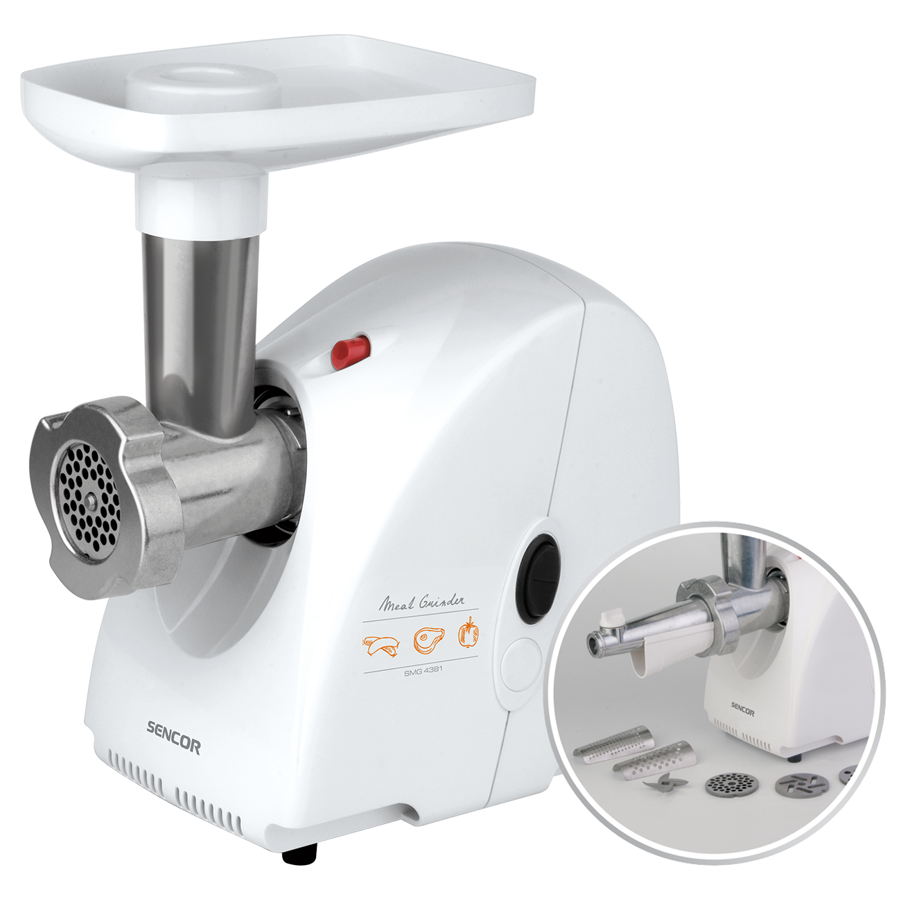 Mașină tocat carne cu accesorii și spațiu depozitare