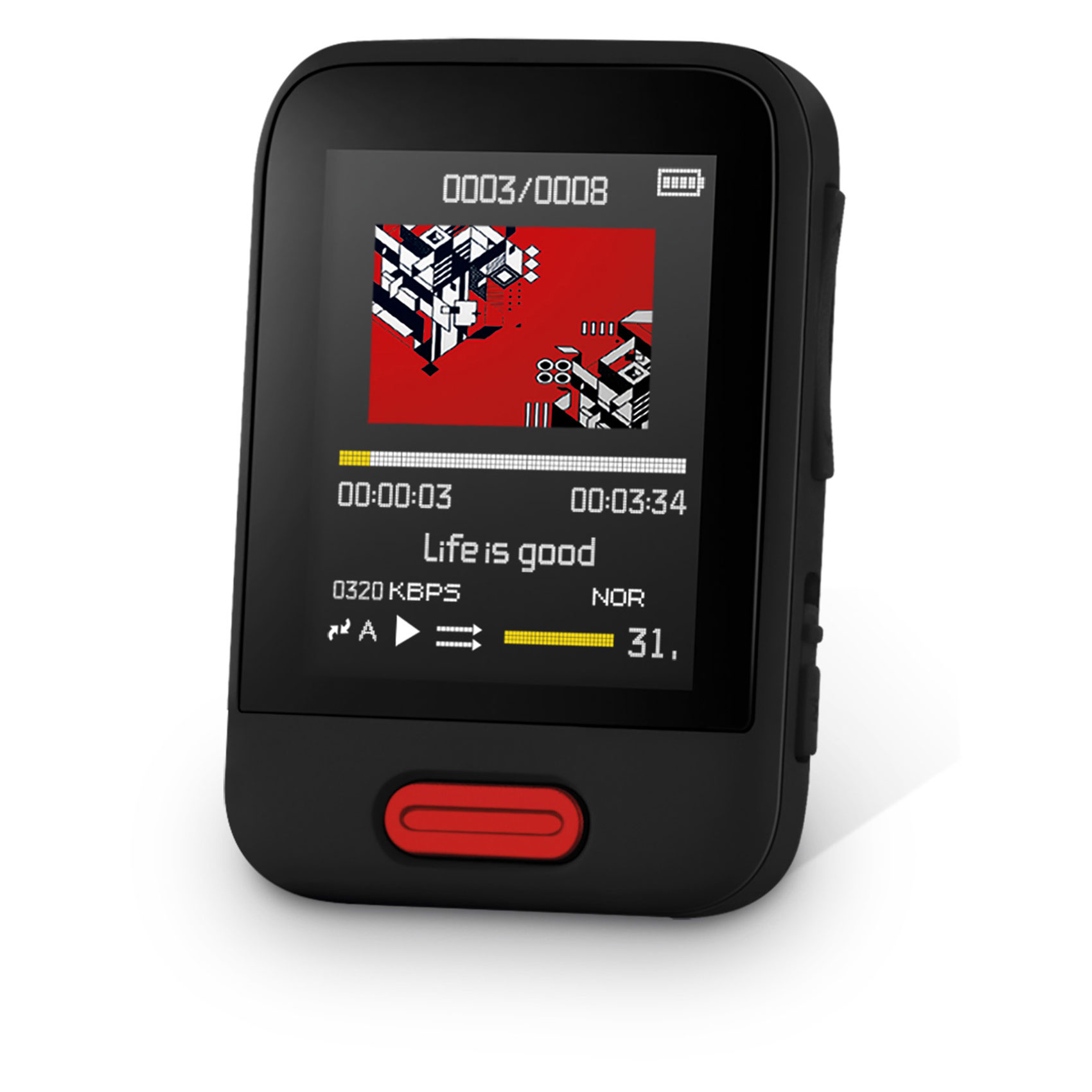 Pachet: Player MP3, căşti, cablu USB, manual