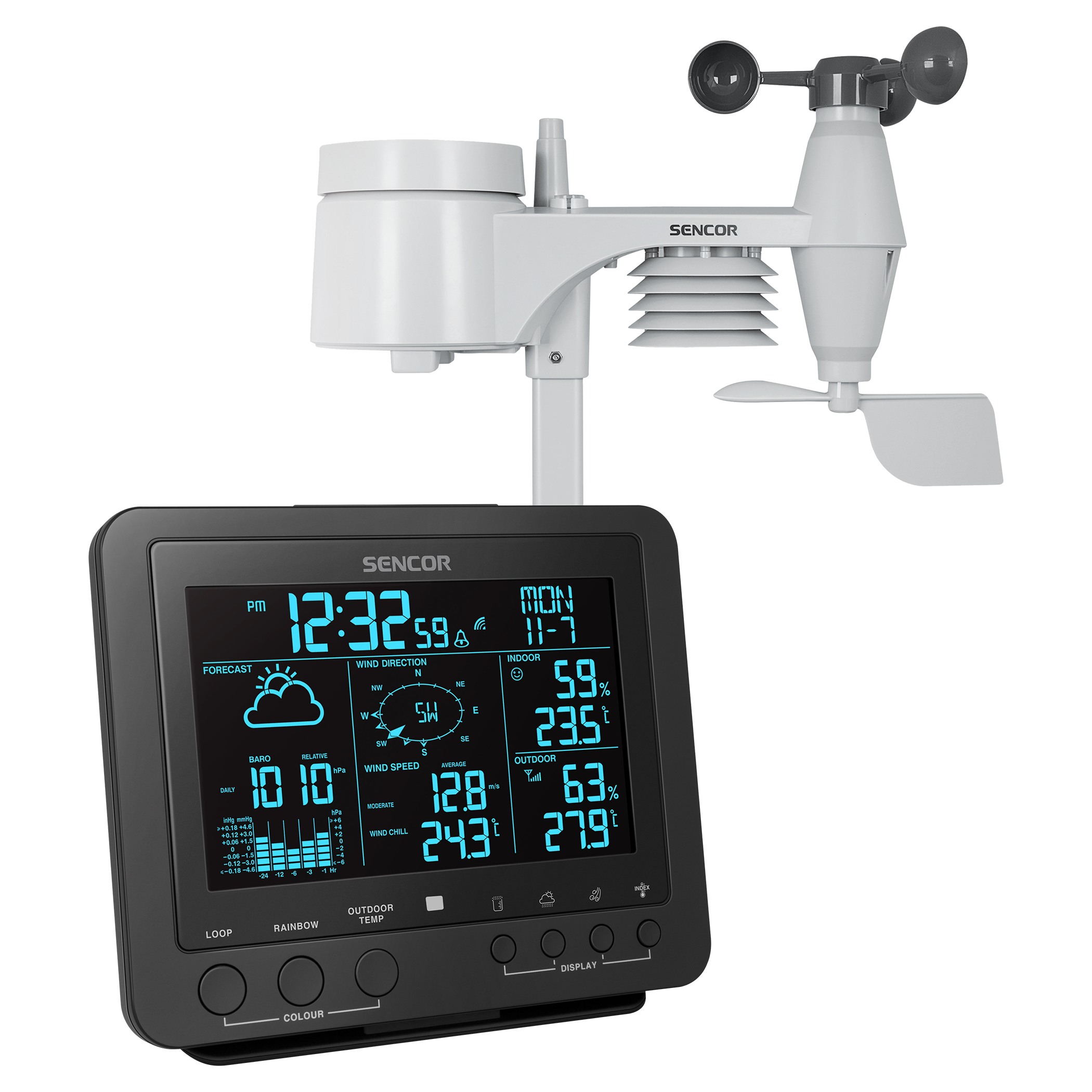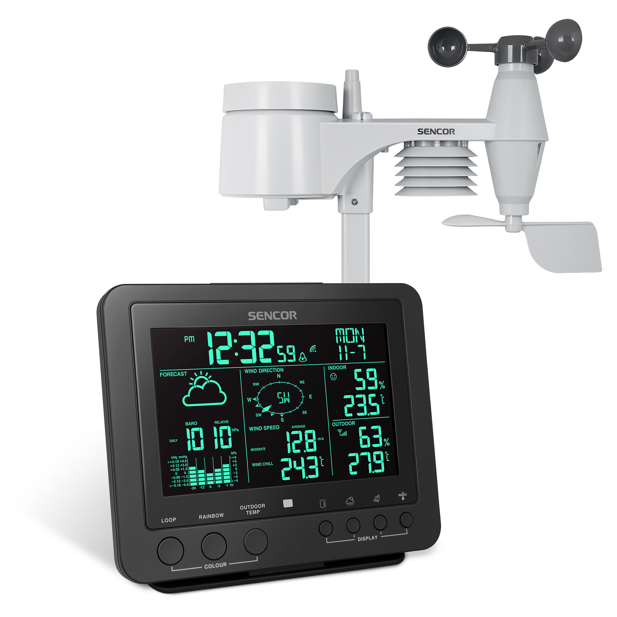 Senzor 5-in-1 inclus: Viteza vântului, Direcţia vântului, Precipitaţiile, Temperatura, Umiditatea