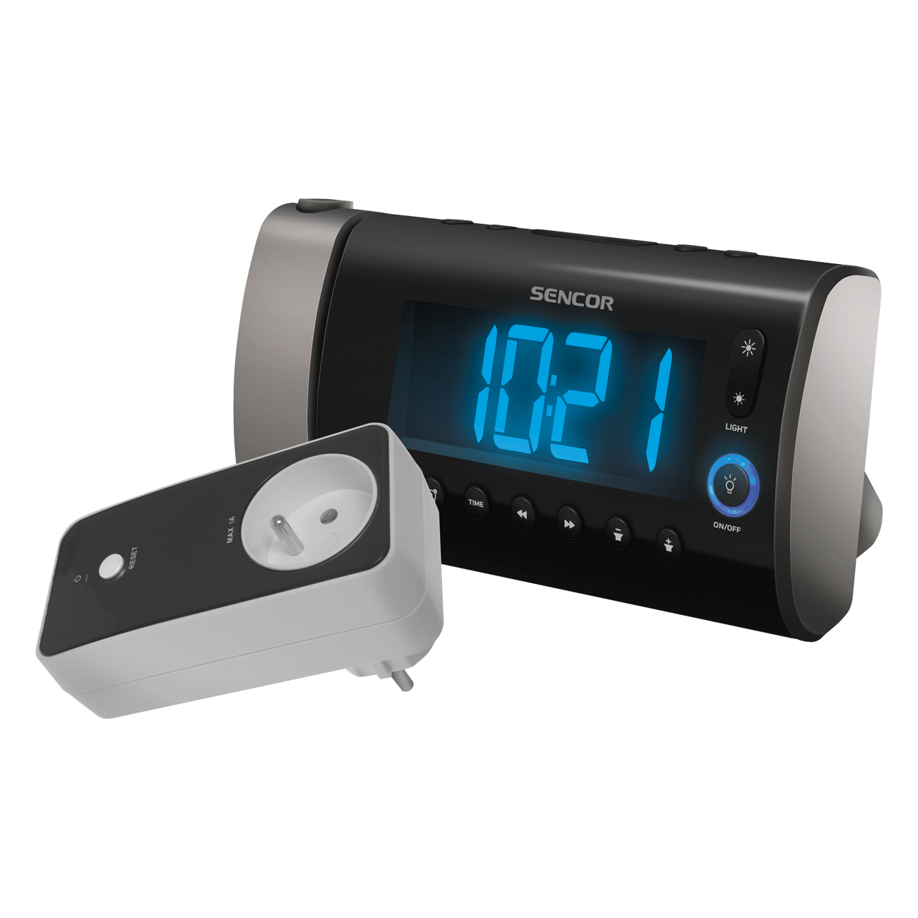 Projection radio clock with remote-controlled outlet